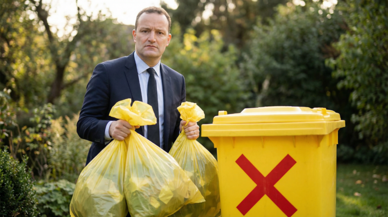 Jens Spahns 1,4-Milliarden-Säcke-Deal blockiert die gelbe Tonne im Landkreis Kaiserslautern. Satirische Eilmeldung aus der Westpfalz.